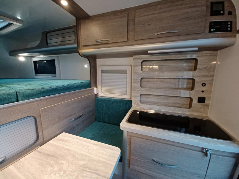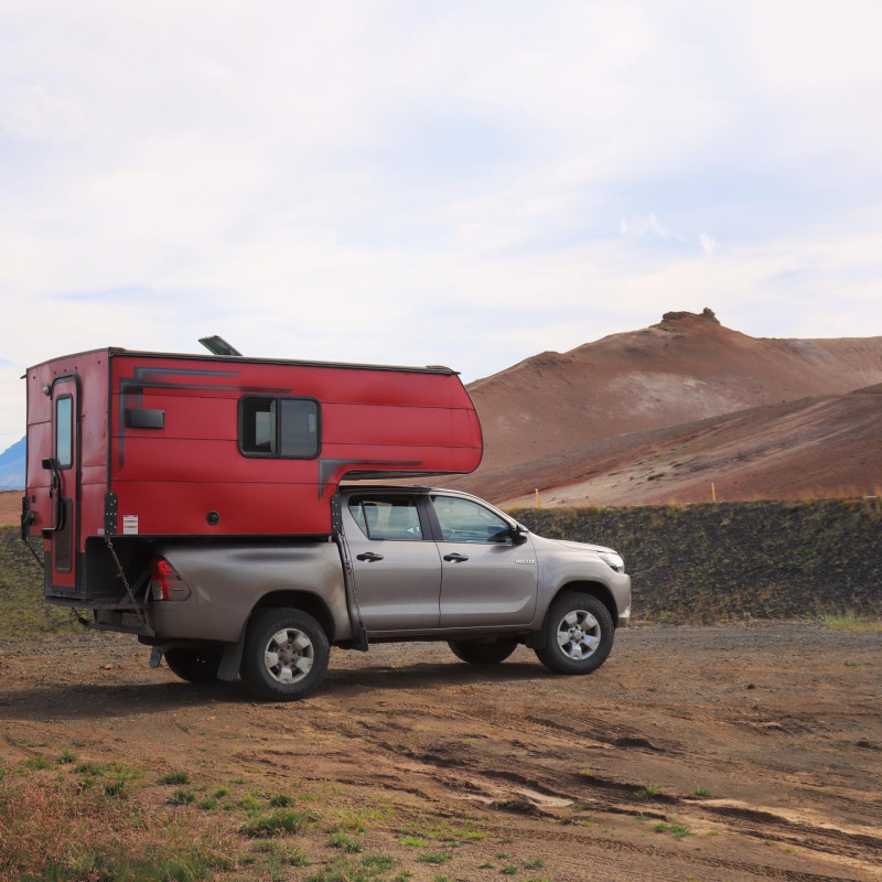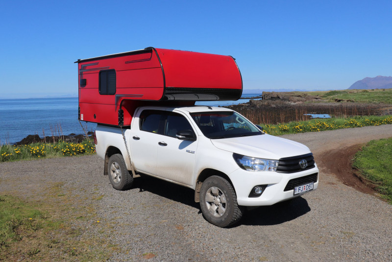 Ce camper est un Toyota Hilux Pickup dernière génération, homologué pour 5 passagers et équipé d’un moteur diesel. Il est disponible en boîte manuelle ou en automatique (avec supplément). Côté confort, il offre de véritables installations de voyage :