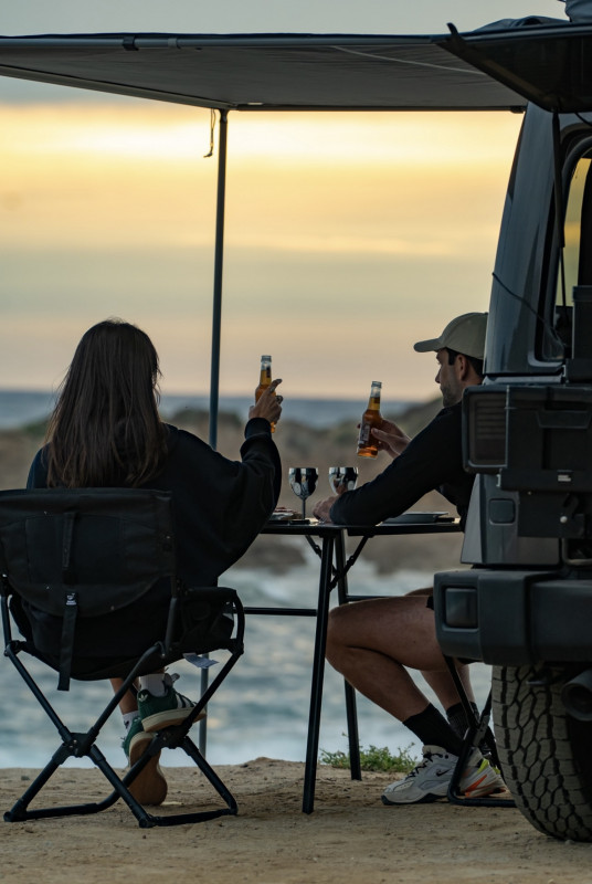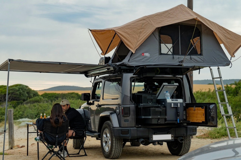 Équipements : Tente de toit front runner - Auvent 2M - Réservoir d’eau 42L + bras de douche - Jerrican 20L - Caisse de rangement Wolf Pack Pro - Table inox - Set ustensiles + couverts - Chaises pliantes x2 - Réchaud BBQ Gaz 2 Cook 33 pro deluxe - Batterie ecoflow + panneau solaire - Refrigérateur/Congelateur Dometic CFX3 46L