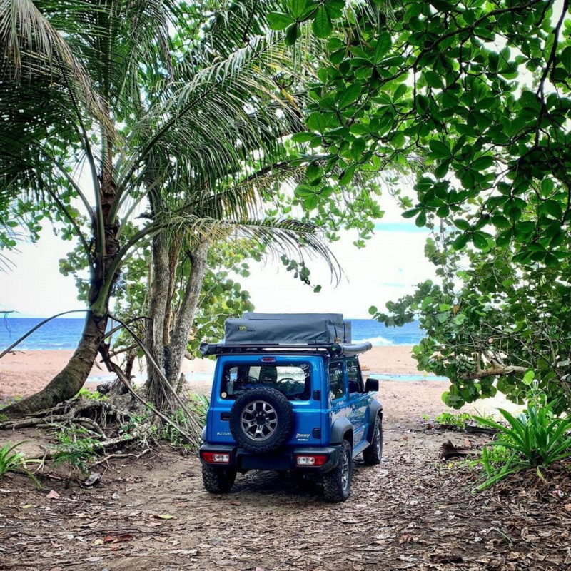 Our reliable Suzuki Jimny 2-door 4x4, it's an ideal for 2 persons adventure; this vehicle is ready to roll with a rooftop tent, awning, and a full set of camping gear, we've even gone the extra mile and removed the rear seats to give you more luggage space. It's all about optimizing comfort and convenience for your trip in Costa Rica.