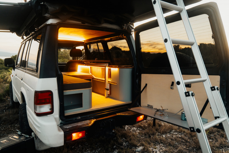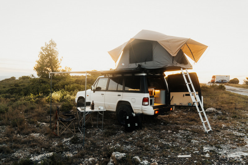 • 4 couchages (lit intérieur 2 places + tente de toit 2 places)