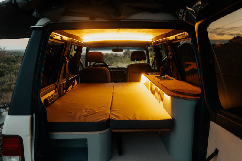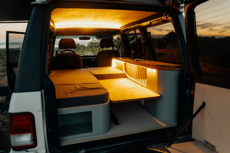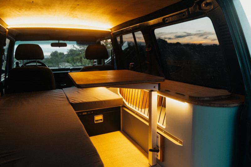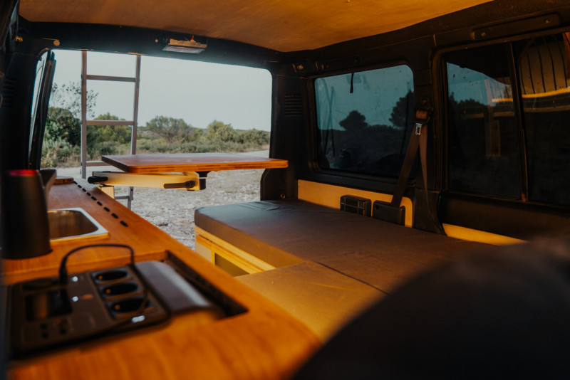 • Des meubles faits sur mesure par Fornomad, optimisés pour maximiser l’espace et le confort