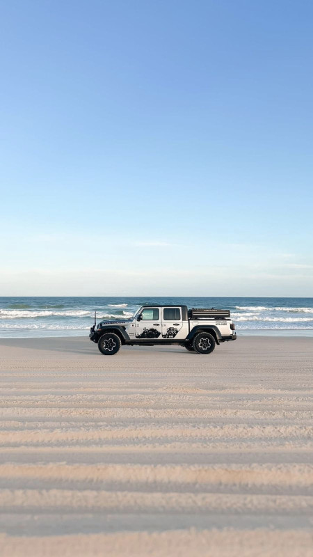 Location d’un Jeep Wrangler Gladiator avec tente de toit sur la Gold Coast