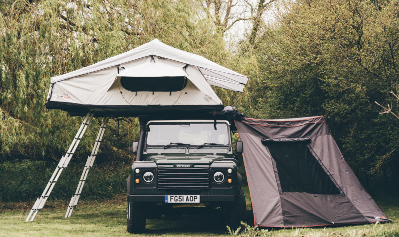 Du côté passager et à l'arrière, un grand auvent CampWerk en forme d'aile de chauve-souris à 270 degrés étend la couverture et l'ombrage pour entourer les 3 côtés du véhicule, ce qui signifie que l'accès à l'avant et à l'arrière peut être protégé des éléments et offre une zone ombragée spacieuse pour cuisiner et se détendre ! Un ensemble de quatre panneaux muraux est inclus, qui peuvent être installés dans n'importe quelle combinaison, créant ainsi un grand espace privé entièrement clos ou une excellente protection contre les intempéries.