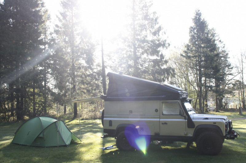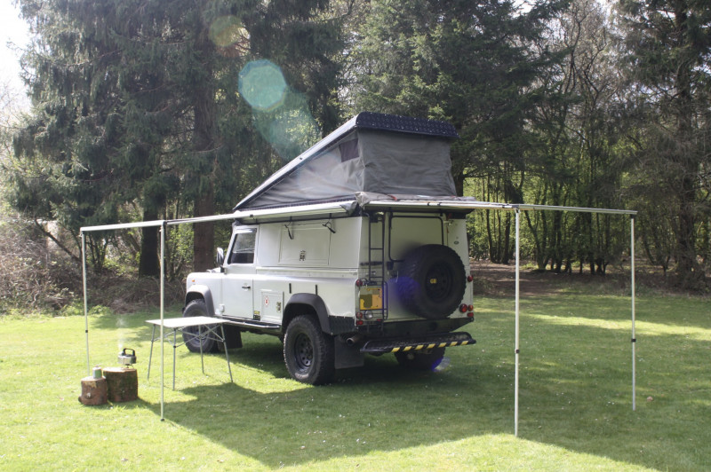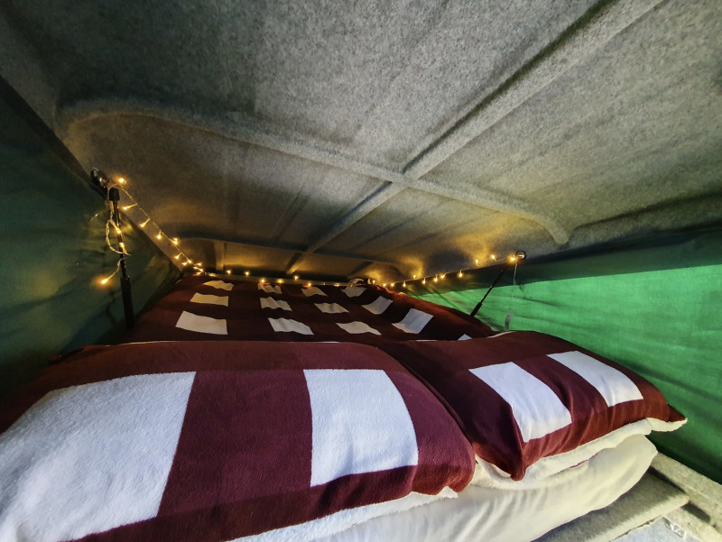Toit relevable sur toute la longueur avec lit double (extensible pour les aventuriers plus grands)