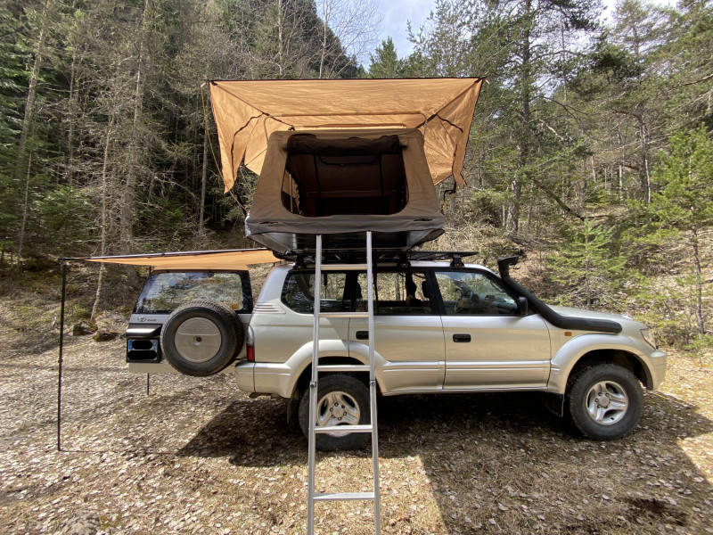 Fiable et confortable, il est idéal pour des séjours longs ou courts en pleine nature, avec sa tente de toit James Baroud 2 places très simple à ouvrir ou fermer, et son équipement essentiel pour le bivouac. Sa rehausse de 5cm et ses pneus AT lui permettent de se frayer un chemin partout et par tout temps. Besoin de fraîcheur? Dépliez les auvents latéraux et arrière pour profiter une grande zone d'ombre.