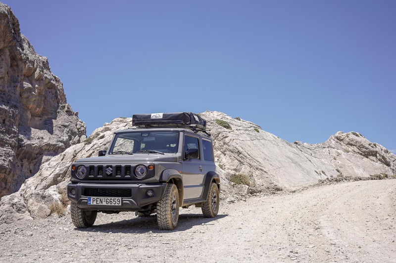 Explorez la Crète en toute liberté en louant notre Suzuki Jimny équipé d’une tente de toit !