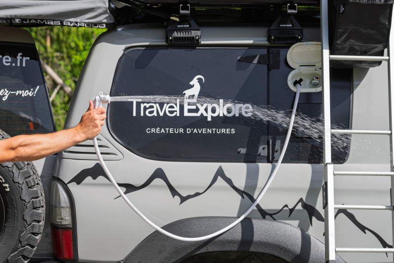 - Douche extérieure chauffée + réservoir d'eau 70L + cabine déployable + toilette sèche : propre et à l’aise, même loin de tout.