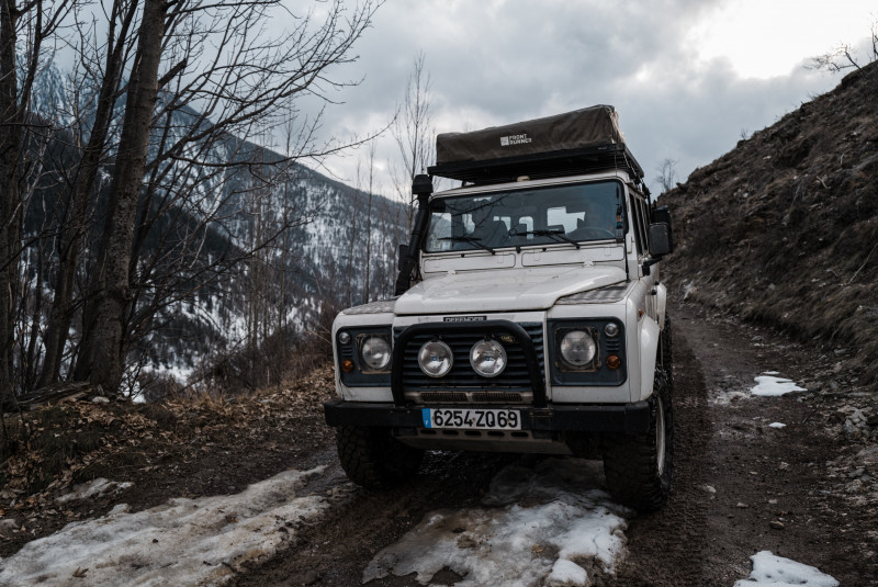 Ce 4x4 land Rover Defender TD5 110 est taillé pour aller au bout du monde. Avec sa tente de toit Front Runner ce véhicule de 9 places est surement le plus adapté aux long séjour en famille ou entres amis. Vivez des expériences de voyage nomade unique : bivouacs en montagne ou en bord de mer .Profitez d'un choix de destinations variés, sur routes ou sur pistes autorisées.