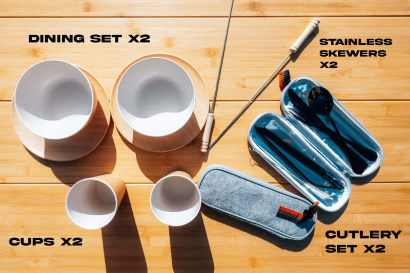 Il est équipé d’une tente de toit facile à installer, de panneaux solaires pour alimenter vos appareils, d’un réfrigérateur intégré pour garder vos aliments au frais, et de nombreux rangements pratiques pour vos affaires. Tout le matériel essentiel pour le camping est fourni : matelas, chaises, table et ustensiles.