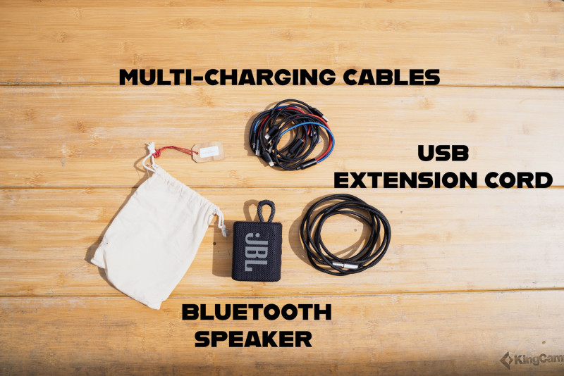 Pour vos moments en extérieur, le Jimny Sierra II comprend également tout l’équipement nécessaire : table pliante, chaises, ustensiles de cuisine et accessoires de camping pour profiter pleinement de vos repas face à la mer ou sous les étoiles.