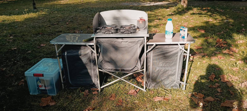 Auvent gonflable 3x4 m pour créer un coin ombragé au bivouac (optionnel)
