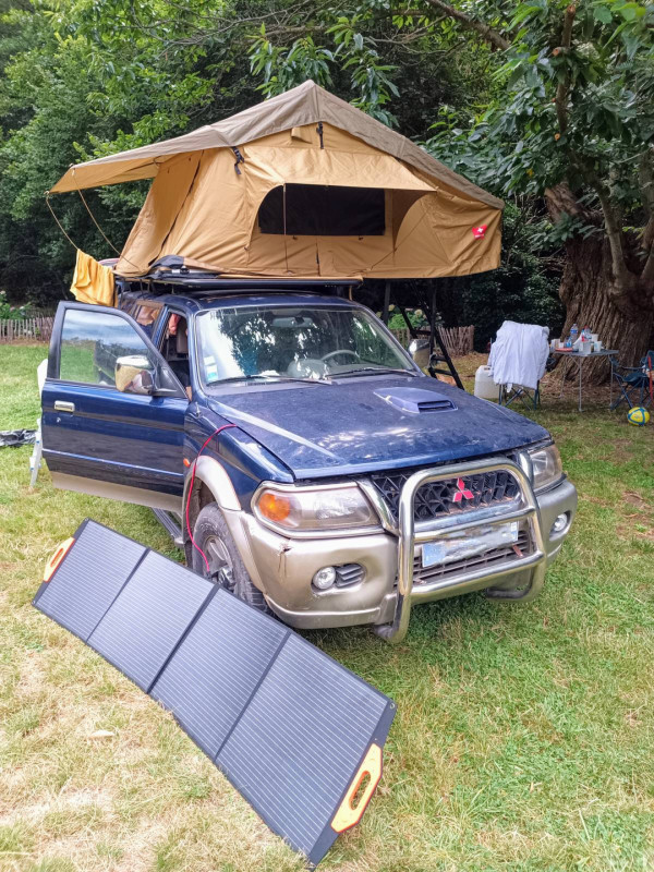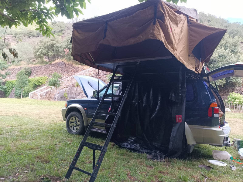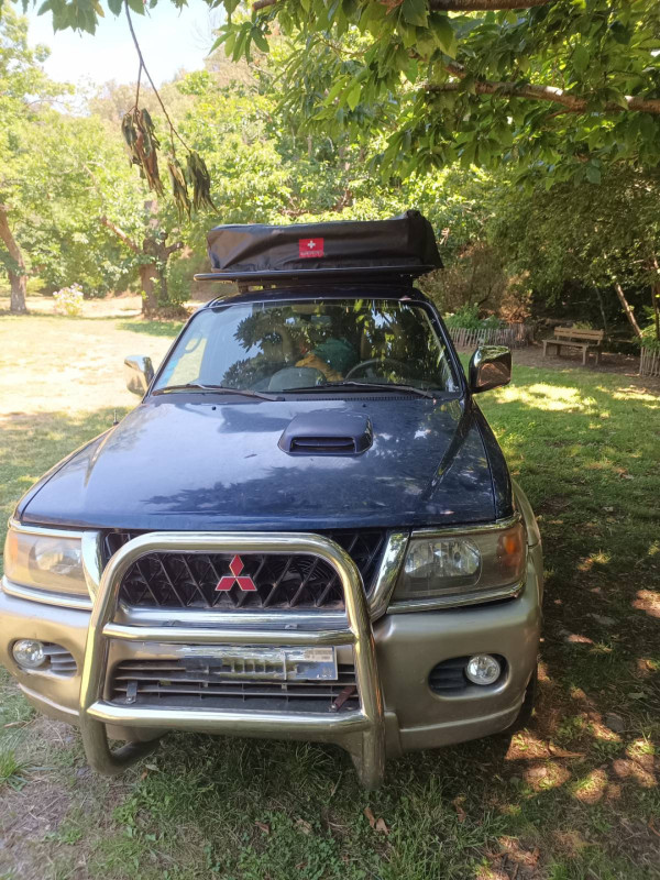 Je vous propose à la location mon Mitsubishi Pajero Sport avec tente de toit, parfait pour explorer les massifs des Pyrénées-Orientales, de la côte Vermeille jusqu’aux crêtes du Canigou.