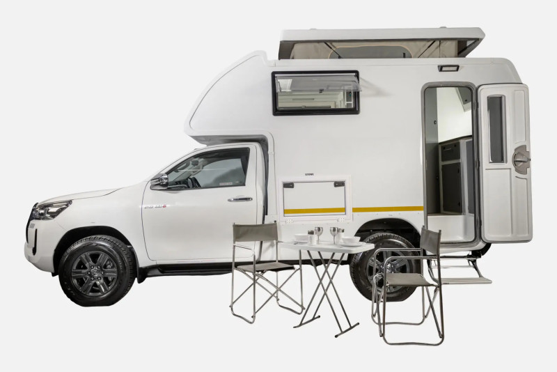 Le Toyota Navi est un 4×4 camper compact conçu pour deux adultes, alliant robustesse tout-terrain et confort autonome. Il est propulsé par un moteur diesel de 2,4 L avec une transmission automatique et dispose d’un réservoir de carburant d’environ 80 L, pour une consommation estimée autour de 12 L/100 km.