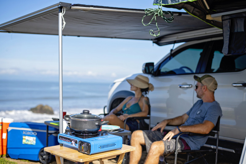 Ce 4X4 Isuzu D-Max est équipé de deux tentes de toit (une de 3 personnes et une de 2 personnes), d’un auvent, de deux réservoirs d’eau pour la douche et pour la vaisselle, d’une glacière, de 5 chaises et d’une table de picnic, du linge de lit pour 5 personnes ainsi que de tous les ustensiles de cuisine.