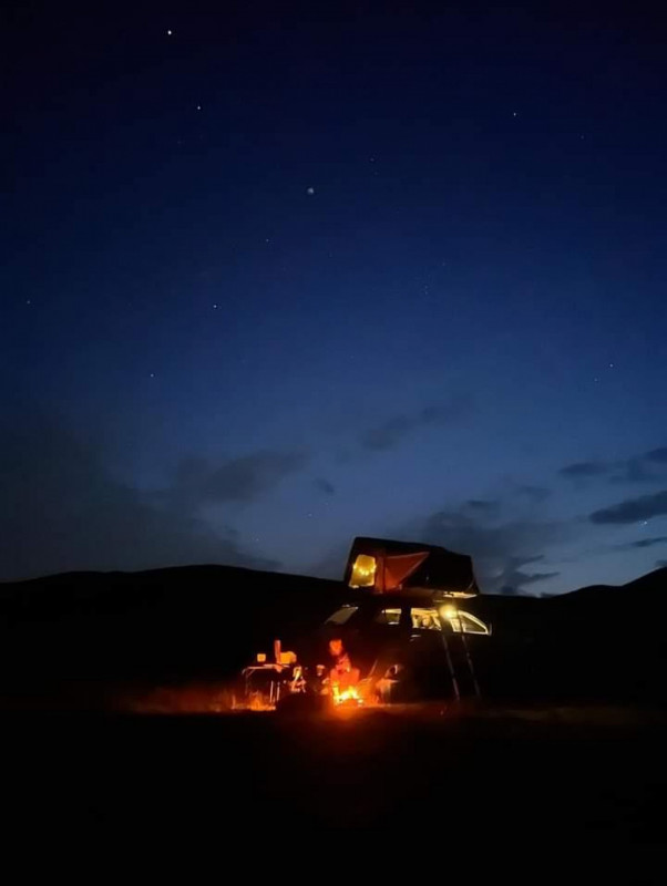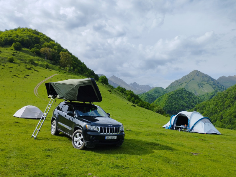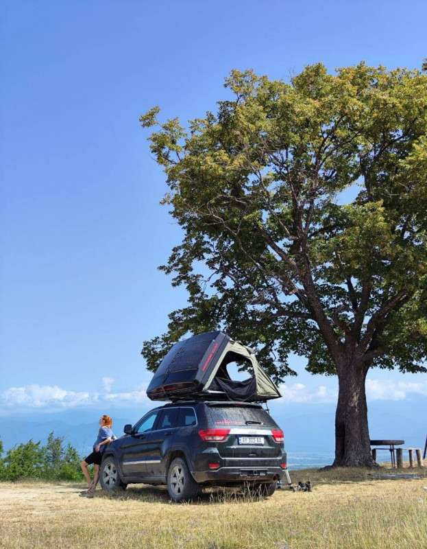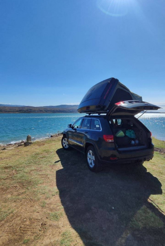 Le Jeep Grand Cherokee équipé d'une tente de toit est un véhicule tout-terrain robuste et polyvalent, idéal pour les aventures en pleine nature. Son design imposant et son moteur puissant lui permettent de s'aventurer sur tous types de terrains, tout en offrant confort et espace à ses occupants.