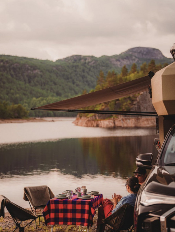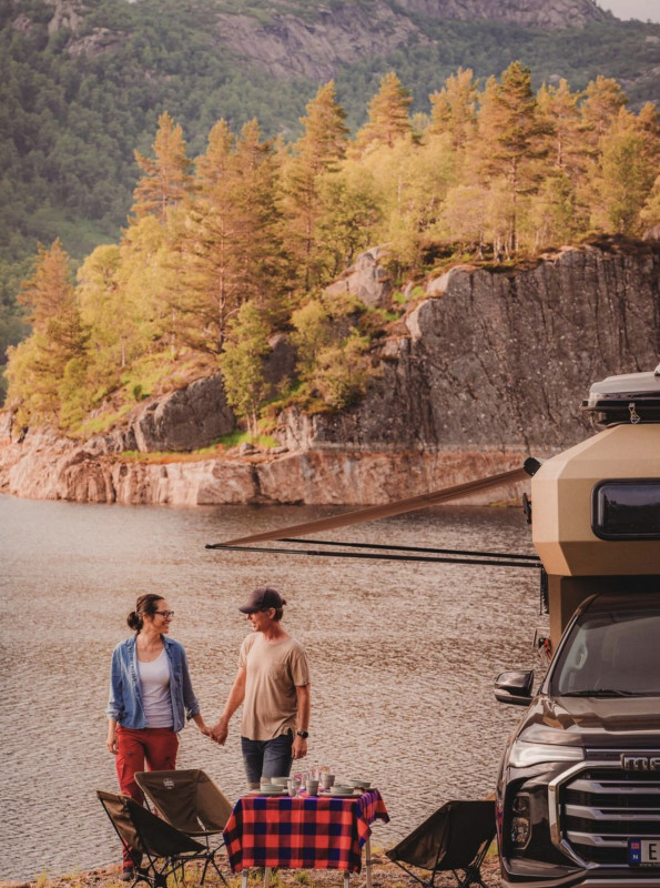 Adventurous travelling in all seasons in Norway becomes simple with an Electric Pickup Camper; you'll experience the comfort of a hotel room even when on a journey through rough countryside. An Electric Pickup Camper is definitely the right climate-friendly choice for outdoor enthusiasts wanting to go off on new adventures. It is designed for all seasons, even the most challenging conditions. Travelling with an Electric Pickup Camper will really satisfy your spirit of adventure. We can drop off and pickup the Electric Pickup Camper car anywhere between Stavanger and Kristiansand. Wherever you come from we arrange a meet up with you and give you a quick briefing about the Pickup and Camper, and then...off you go!