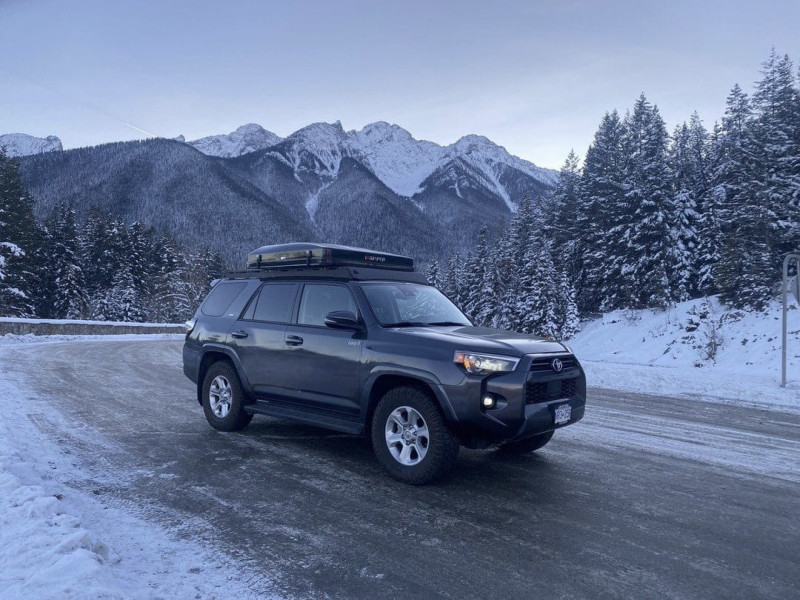 Découvrez les paysages grandioses de la Colombie-Britannique à bord d’un Toyota Tacoma tout-terrain, conçu pour l’exploration. Que vous soyez en quête de montagnes, de forêts denses ou de plages sauvages, ce 4x4 est prêt à vous emmener partout avec son équipement complet et sa tente de toit iKamper 3.0s ultra-confortable.