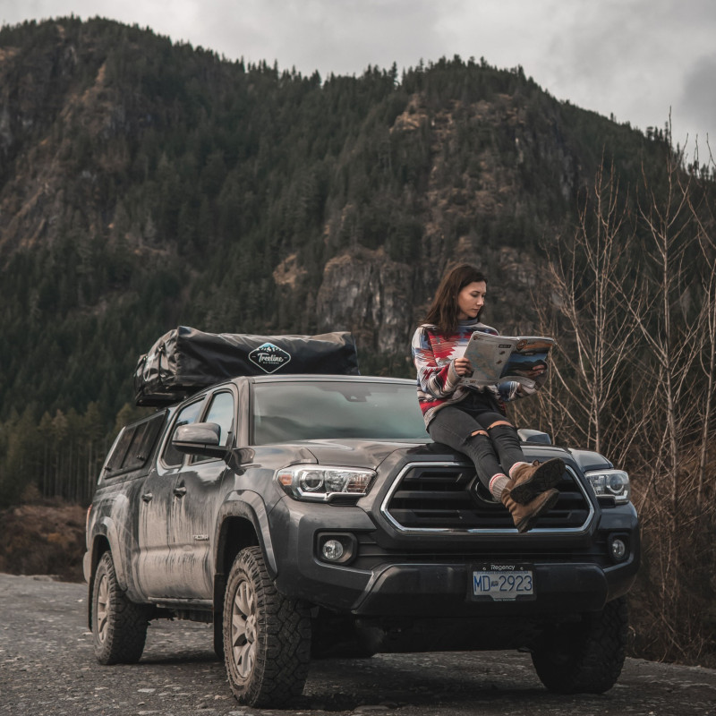 Partez à l’aventure en Colombie-Britannique avec notre Toyota Tacoma équipé d’une tente de toit iKamper !